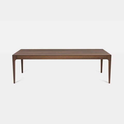 The CAROLINA Collection reimagines traditional design with curved legs and a shadow gap that gives the illusion of a floating tabletop. The collection includes dining tables with optional extensions, coffee tables, side tables, console tables, benches and matching chairs. Each piece is meticulously handcrafted by expert furniture makers using sustainable and locally sourced materials. The minimalist aesthetic is enhanced by the slim 1" thick tabletop, while the solid wood frame ensures strength and durability.